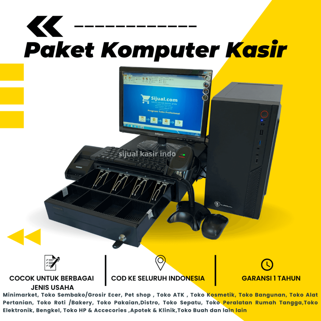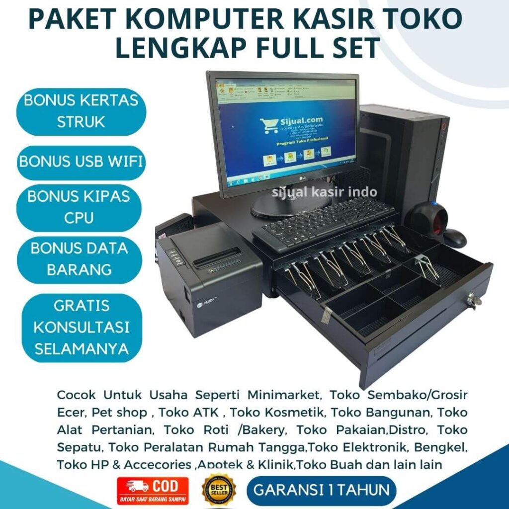 Paket komputer kasir siap pakai dengan aplikasi profesional untuk laporan stok, laba rugi, dan keuntungan Anda. Cocok untuk segala jenis toko retail!